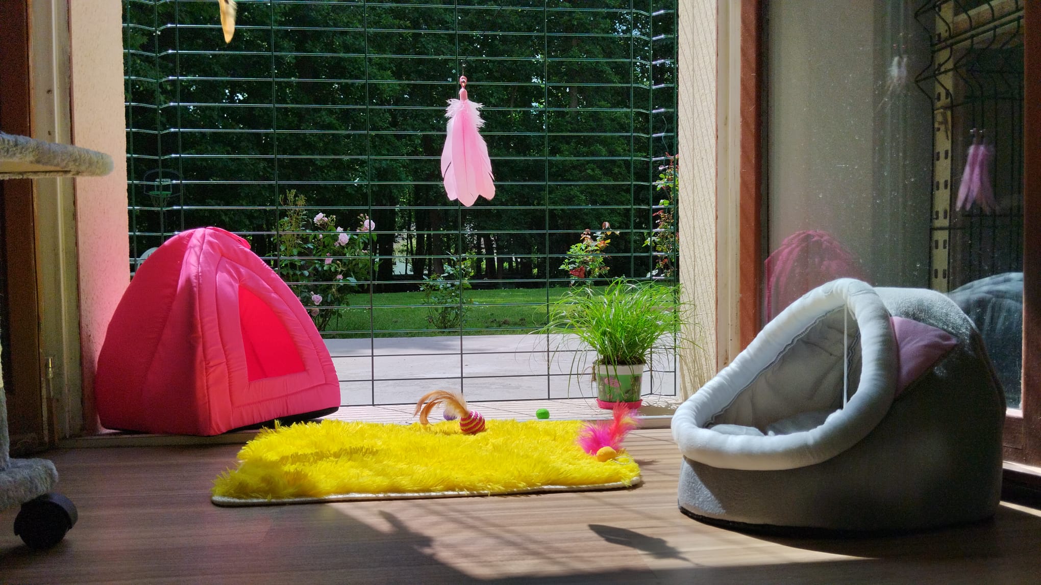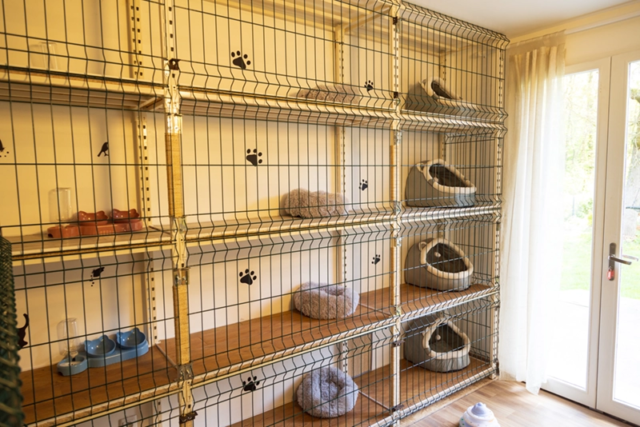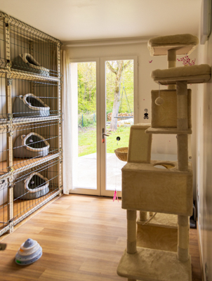 Afin de rendre votre absence plus supportable, votre compagnon sera choyé et de nombreux équipements seront à sa disposition pour jouer, se percher, observer les oiseaux dans le jardin. Des paniers confortables et individuels sont évidemment à leur disposition.